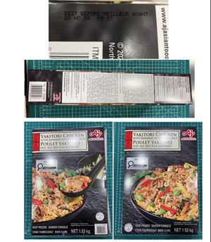 1.53-kg. cardboard packages containing 6 bags of frozen “AJINOMOTO YAKITORI CHICKEN WITH JAPANESE-STYLE FRIED RICE” with BEST BEFORE/MEILLEUR AVANT dates 26 SE 09 through 26 NO 12.